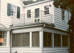 Deck railing, deck hand railing, and deck guard railing from Suburban Welding Company® can be adapted to most decks or patios. Elevated decks should have deck railings for both required and obvious reasons. Custom made deck railings provide safety and the elegance of the ornamental iron look and can be configured to most decks and a variety of construction materials.Ornamental iron hand railing and wrought iron railing and wrought iron hand railing are well suited for deck railings, step railings, porch railings and patio railings. Call Suburban Welding Company® at 703-765-9344 for your deck railings, ornamental ironwork, ironwork repairs and welding services.